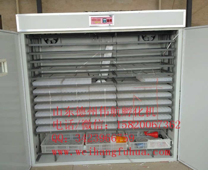 (3)翻蛋 在入孵后第1-26天,每隔2-3h要翻蛋一次,每日翻蛋8-12次,翻转角度为90度,以使胚胎各部分受热均匀,防止胚胎黏壳。如果孵化机内各处温差±0.5℃,则每日要调盘一次,即上下蛋盘对调,蛋盘四周与中央的蛋对调,以弥补温差的影响。
